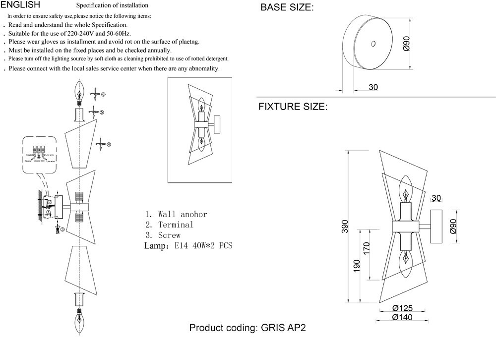 Бра Crystal Lux GRIS AP2 GOLD